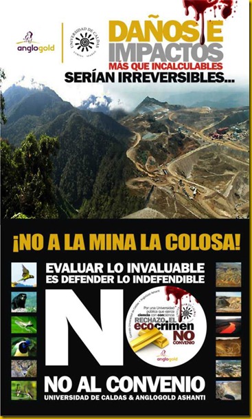 Parece que la UNIVERSIDAD DE CALDAS se adelanta a la reforma de la educación que propone el gobierno tendiente a facilitar la financiación de la universidad por empresas privadas. En este caso por una empresa minera extrajera que llega al país precedida de denuncias internacionales por contribuir a la financiación de grupos paramilitares en África y que en sus actuaciones recientes a demostrado el poco respeto que tiene por las leyes colombianas. Nada que nos extrañe aquí en Colombia.