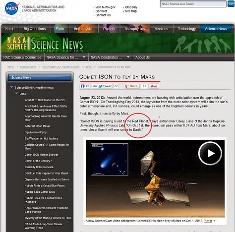 Desde mediados de Agosto (2013) comprendimos bien que ISON NO habría podido ser descubierto en Septiembre del 2012 como se dijo (!)(clic para ver), hoy bajo la lupa podemos desprender que todos estos elementos antes expuestos, junto a los ciclos (clic para ver), fechas (clic para ver) y números (clic para ver) nos confirman la presunción de ocultamiento de un hecho que muy posiblemente antiguas cultura originarias ya sabían (clic para ver) y donde por supuesto NASA juega a las escondidas mientras gana tiempo en medio de globales distracciones(!)(clic para ver).