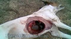 (4) en todos los casos de alta extrañeza, se observa “autolisis” –el tejido continúa autodestruyéndose un tiempo luego de la muerte del animal-